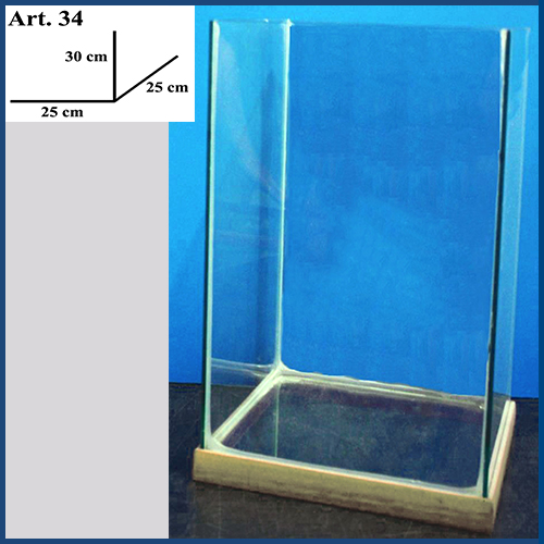Terrario aperto in vetro fatta a mano, senza coperchio. Impermeabile adatta per contenere sia liquidi che materiale secco. Alla base la cornice è in legno. DIMENSIONI: L 25 x H 30 x P 25 cm - La cornice può essere di diversi colori.